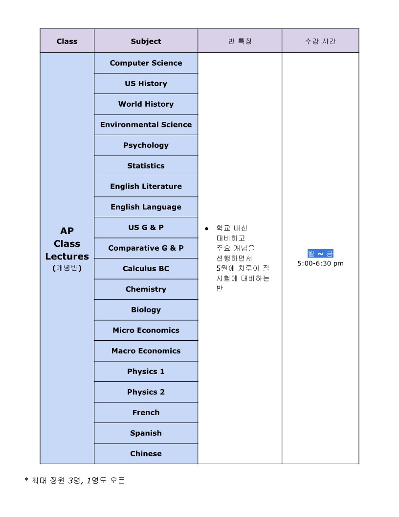 ▷ 교과 수학, AP 전 과목, IB 전 과목 (개념반)