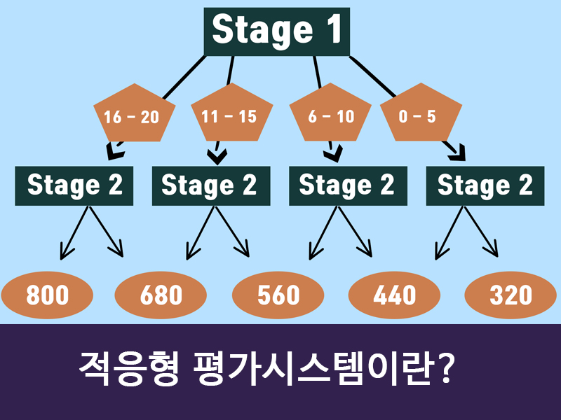 - 적응형 평가 시스템은 실력이 뛰어난 학생에겐 Stage "2"에서 더 어려운 문제가 제공되며