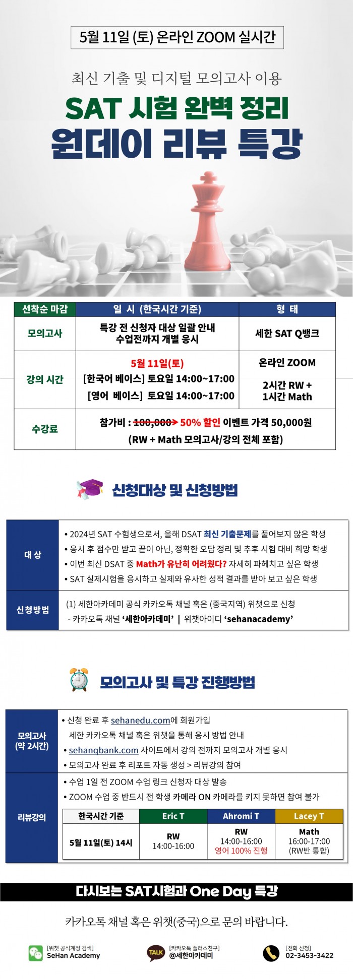 [세한아카데미] SAT 최신 기출 ONE-DAY 특강 5/11(토)