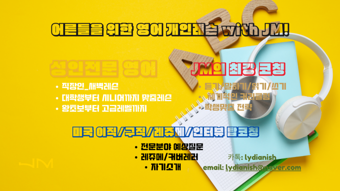 #어른들을위한영어 #영어개인레슨 #영어회화 #영어말하기 #1대1영어수업 #영어코칭 #JM영어 #영어무료체험 #화상영어수업 #성인영어 #영어듣기훈련 #영어스피킹 #미국이직 #영어레쥬메 #영어인터뷰 #AdultEnglish #SpeakEnglishFluently #EnglishCoaching #PrivateEnglishLesson #EnglishForAdults #ESLLesson #OnlineEnglishTutor #1on1EnglishClass
