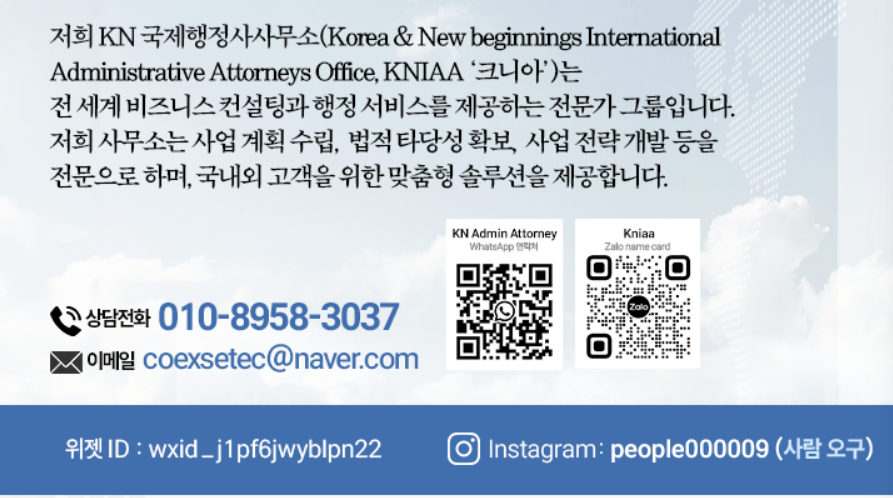 서울특별시 종로구 우정국로 58-1 2층 201호 케이엔국제행정사사무소(KNIAA,크니아)