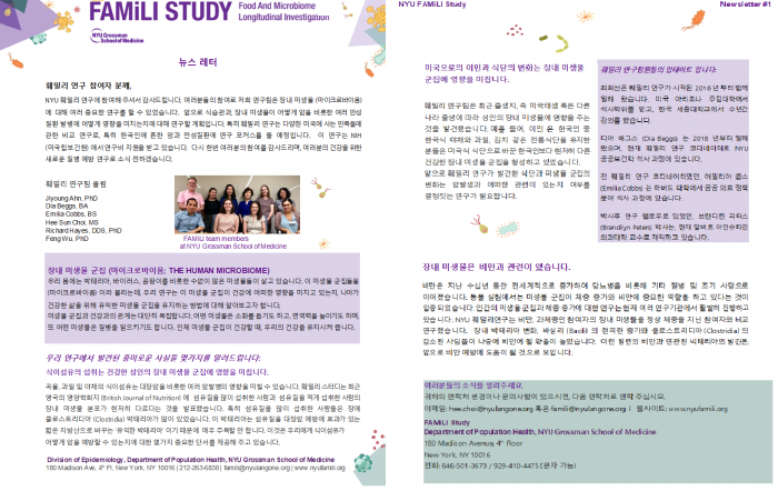 NYU NIH2022.04.16- ltlt한국인을 위한 연구에 참여하셔서 함께 건강을 지키시기 바랍니다gtgt- 미국립보건원(NIH)와NYU의과대학에서는식습관환경박테리아와암 비만 당뇨 고혈압 등만성질병에대한연구참여자를모집합니다.-참여조건: 40세이상미국내거…