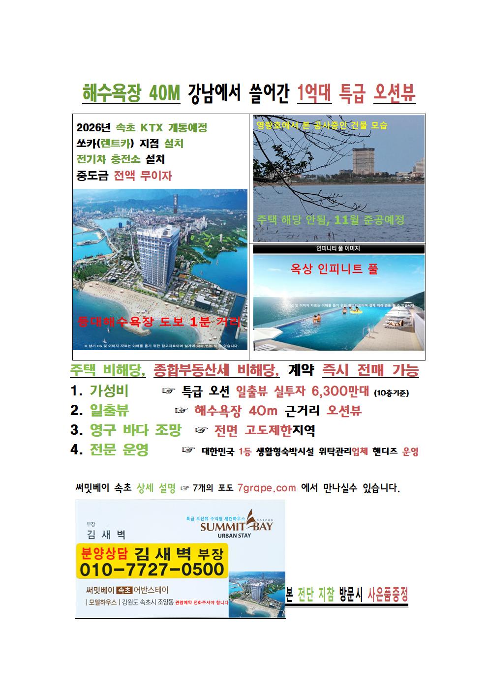 속초 특급 오션뷰 분양 11월준공2021.05.28- 연락처 82-10-7727-0500 카카오톡 문의해주세요